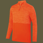 100% polyester heathered wicking knit top body, collar and sleeves ; 100% polyester wicking knit solid bottom body ; Wicks moisture away from the body ; Pad print label ; Quarter-zip pullover style; Self-fabric collar ; Set-in sleeves ;