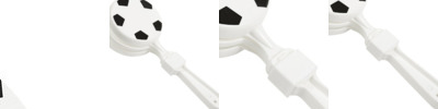 • Soccer-shaped plastic clappers featuring sport-themed stock art