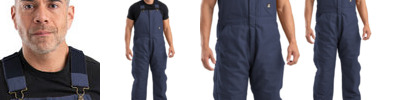 10 oz., super-duty 100% cotton duck; Medium-weight quilt lined taffeta; Water-repellent finish; Full-length heavy-duty brass zipper; Triple-needle stitched main seams; Double inside chest pockets; Insulated "High Back" design;