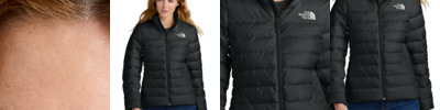 - Contrast heat transfer The North Face logo on left chest and right back shoulder