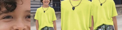 - Neon colors: 3.6 oz, 40 singles, 52% Airlume combed ringspun cotton, 48% polyester