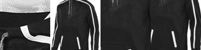 - Three piece double needle stitched hood with textured loop detail at hood opening